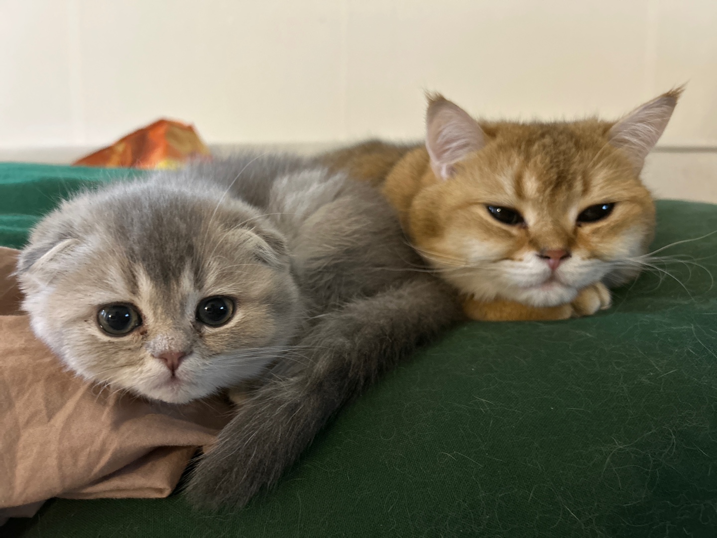 귀가 접힌 엄마 고양이와, 접힌 귀를 가진 아빠 고양이 사이에서.